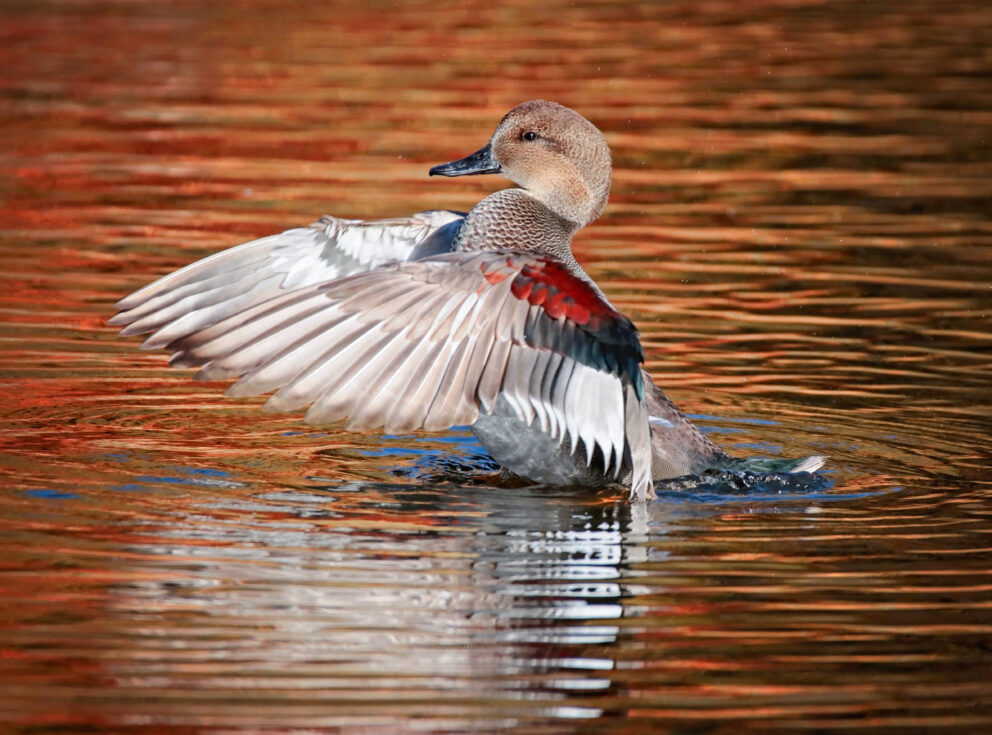 These ducks are diurnal for most of the year but chose to migrate at night to avoid predation and conserve energy by flying when it’s cooler. They primarily eat plants and aquatic invertebrates including seeds, leaves and stems, aquatic insects, crustaceans, fish, and sometimes amphibians. Gadwall are dabbling ducks so they stay above water when feeding.