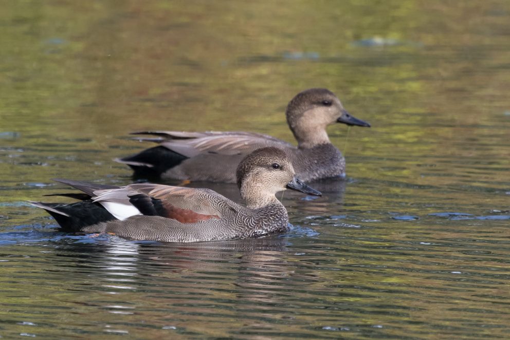 Gadwall will use marshes, small ponds and lakes for breeding habitats. They like water in more open areas that are not bordered by dense forests or other vegetation other than grasses and shrubs. In Nevada, Gadwall are found throughout the state during the breeding season, non-breeding season, and in the Northwest part of the state, they can be found year-round.