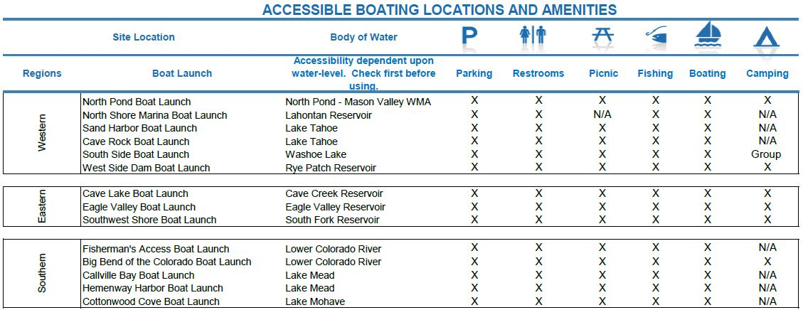 ACCESSIBLE BOATING LOCATION AND AMENITIES IN NEVADA