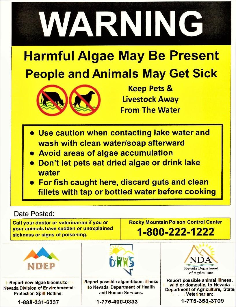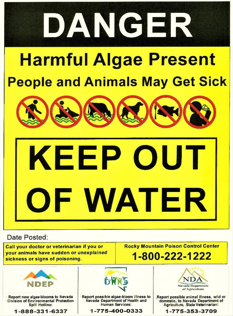 While arriving at a lake or reservoir in Nevada to do some fishing, swimming, boating, water skiing, or playing with the dog in the water, you may encounter one of these posted signs: