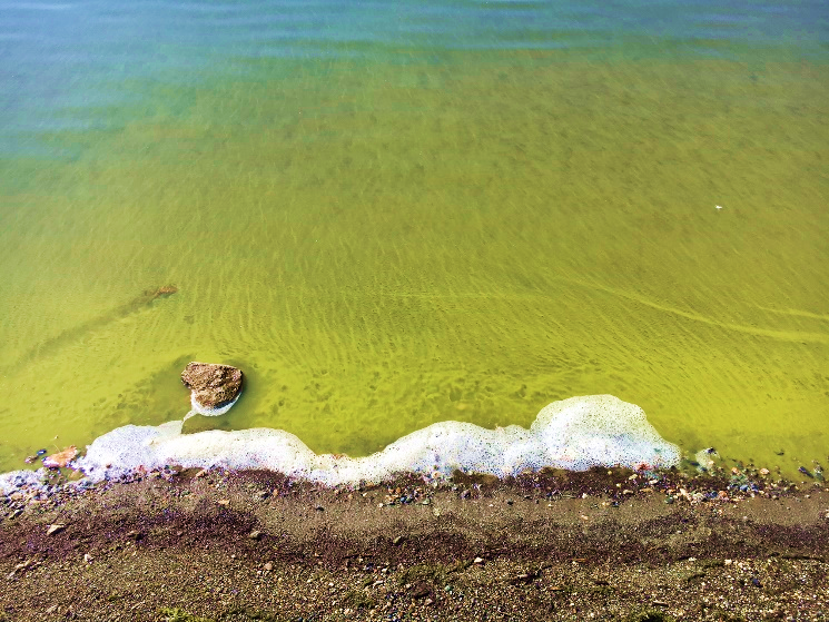 Although cyanobacteria do not always produce toxins, algal blooms can develop when nutrients (similar to fertilizers on a lawn) are high, temperatures are warm, and the water becomes stagnant. Depending on lake conditions, an algae bloom can develop rapidly. Bluegreen algae often concentrate near or at the water surface creating scum-like blooms that are greenish (in many cases), but can be light blueish, whitish, brownish, or reddish (or a combination) in color.