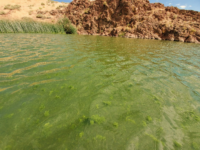 However, most open-water algae are beneficial and become part of a healthy lake system. They are important in creating dissolved oxygen for fish to survive while also being the foundation of the food chain. Some fish filter and eat algae directly from the water, but more importantly, small planktonic animals (related to shrimp and crabs) that consume algae become food for young or filter feeding fishes. One thing to note, levels of toxins in fish from harmful algae blooms found in Nevada are usually low enough that the fish can still be eaten. If you are at a posted water body or are concerned about water conditions, wash your fish with clean water and only eat the filets, disposing of the skin and guts.