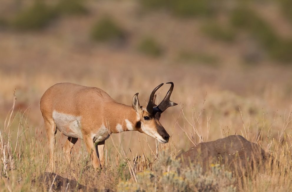 Pronghorn prefer gentle rolling to flat, wide-open topography. These habitats allow the Antelope to spot predators from far distances and quickly escape. They are primarily found in the mountain ranges of northern and central Nevada.