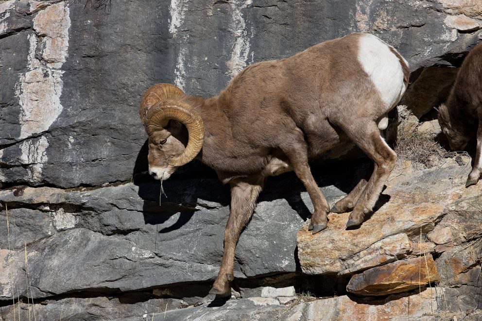 This species of Bighorn Sheep prefers the rough and rocky habitat of mountains in Southern Nevada. Steep rocks offer protection against predators, who are unable to navigate and climb up after the bighorn sheep. Although residents of deserts, they do require freestanding water to help them get through the hot summers.